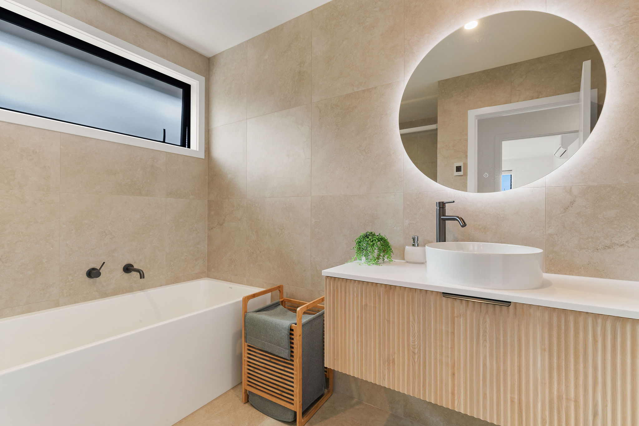 The master suite is a private retreat, complete with a walk-in wardrobe and a beautifully finished fully tiled ensuite featuring underfloor heating and double rainfall showers. A separate powder room and fully tiled main bathroom, also with underfloor heating, comfortably services the additional bedrooms.